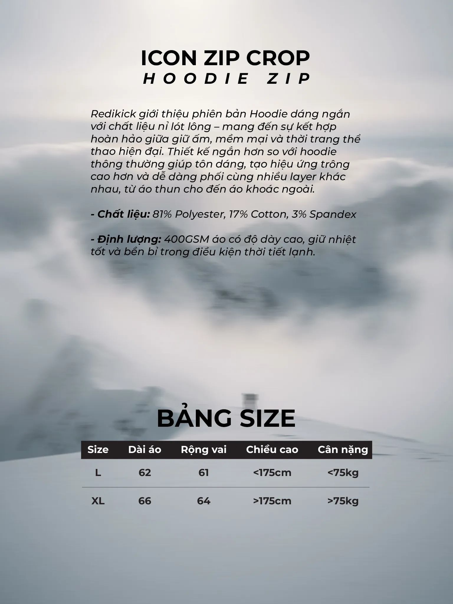 Redikick giới thiệu phiên bản Hoodie Zip dáng ngắn với chất liệu nỉ lót lông – mang đến sự kết hợp hoàn hảo giữa giữ ấm, mềm mại và thời trang thể thao hiện đại. Thiết kế ngắn hơn so với hoodie thông thường giúp tôn dáng, tạo hiệu ứng trông cao hơn và dễ dàng phối cùng nhiều layer khác nhau, từ áo thun cho đến áo khoác ngoài.